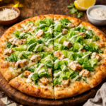Tender grilled chicken breast over a light Caesar dressing, topped with melted mozzarella and Parmesan, then finished with crisp romaine and a delicate Caesar drizzle for a fresh, classic Caesar flavor in every bite.